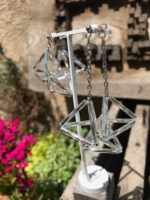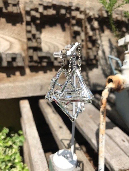 約2.0cmのツイストのガラスビーズで製作した三角が3つ繋がってるデザイン。