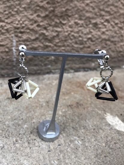 約1.2cmのツイストガラスビーズで製作した、約1.5cm×1.5cmのマットブラック三角。