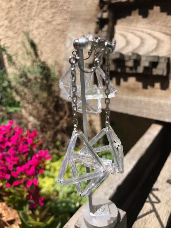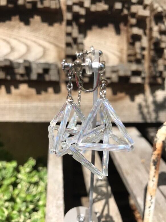 約2.0cmのツイストのガラスビーズで製作した三角が3つ繋がってるデザイン。