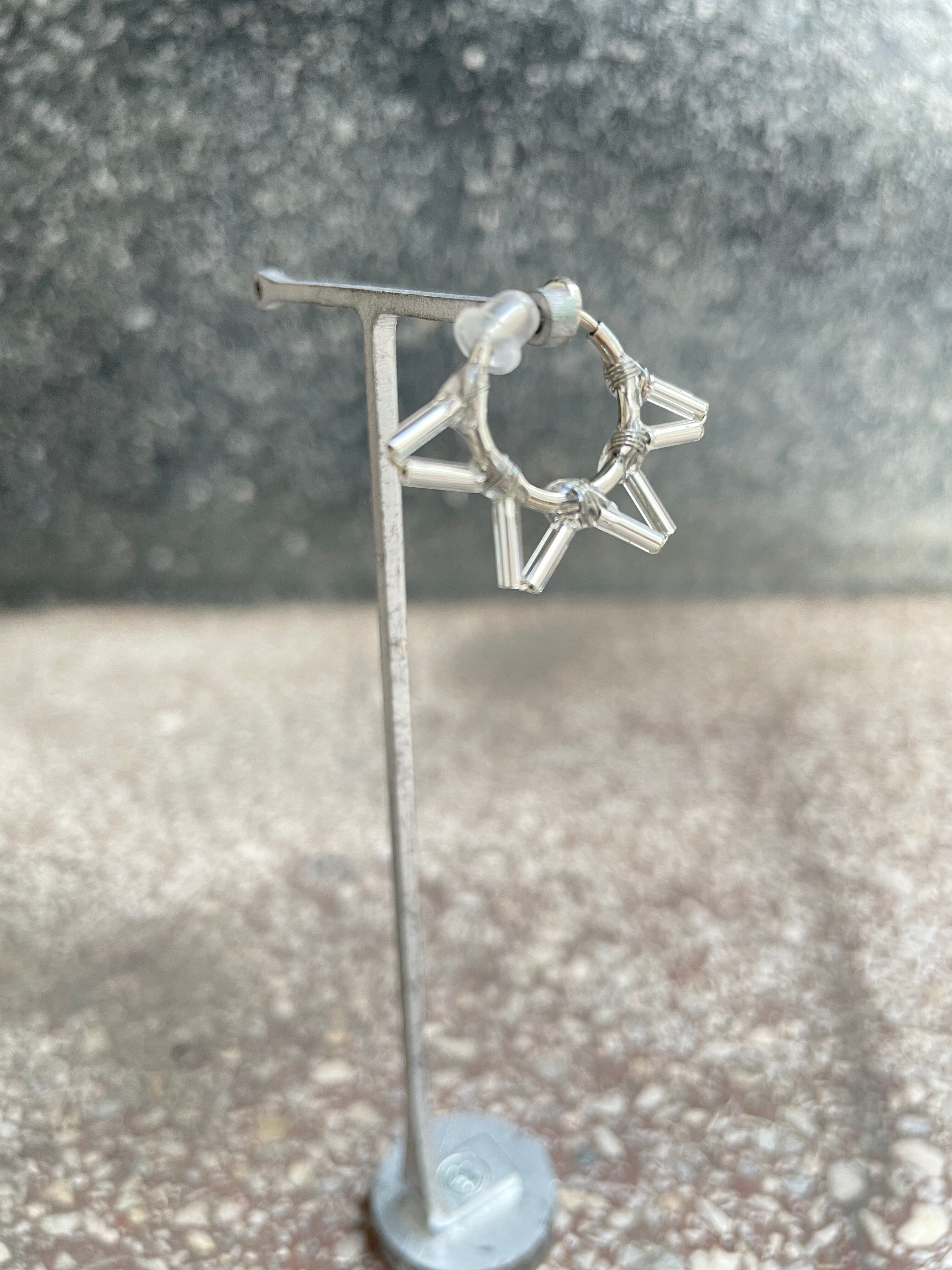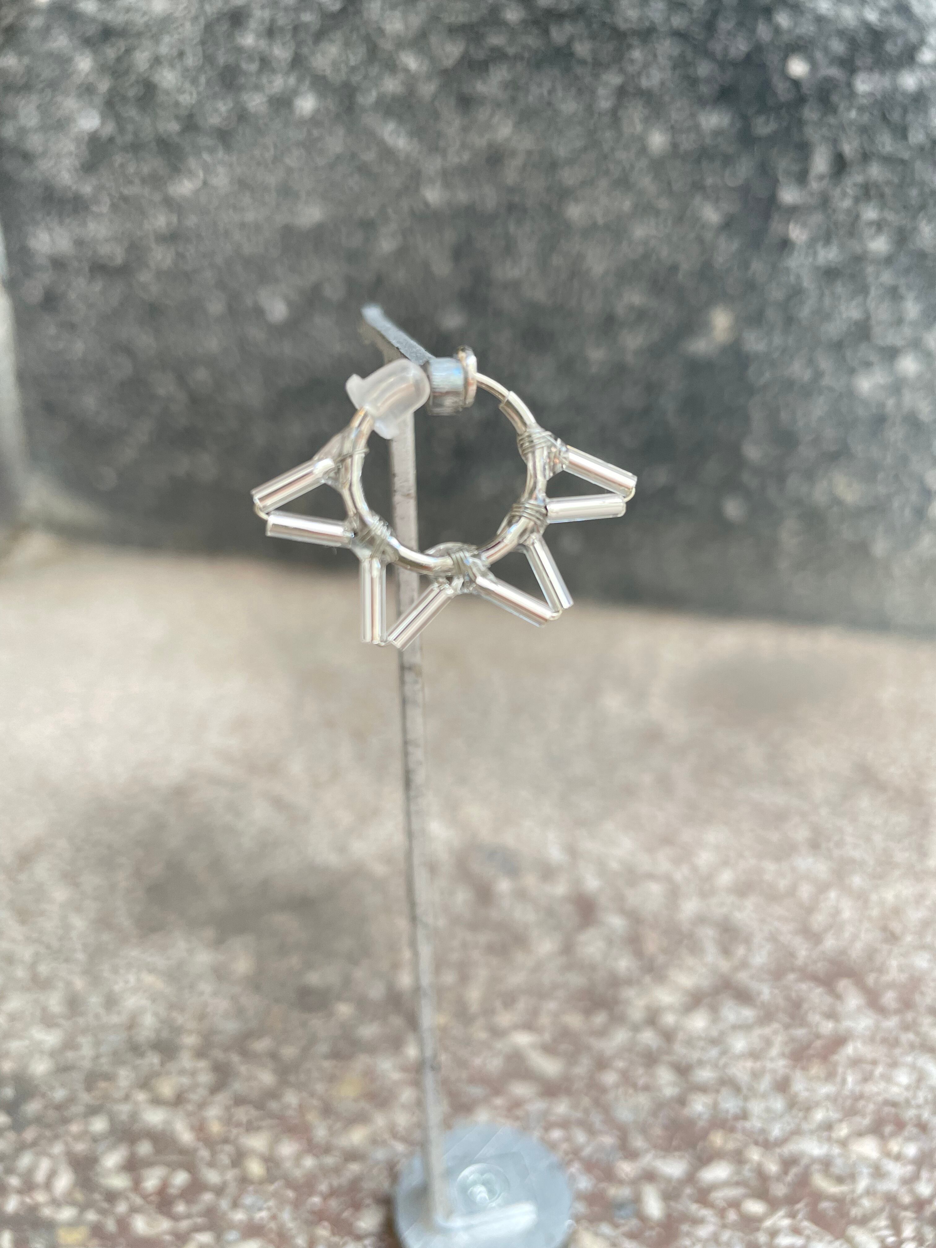 ストレートの約6mmのシルバーカラーのガラスビーズを、4山作って製作してます。